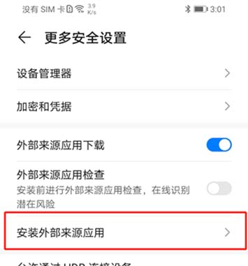 2.开启“外部来源应用下载”,关闭“外部来源应用检查”